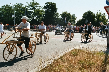 Mit einem orginalgetreuen Nachbau der Laufmaschine fuhr die Lokale Agenda 21 MA-Neckarau e.V. diese Strecke nach, erinnerte damit erstmals auf diese Weise an die historische Fahrt und warb für die Förderung des Radverkehrs in Mannheim.